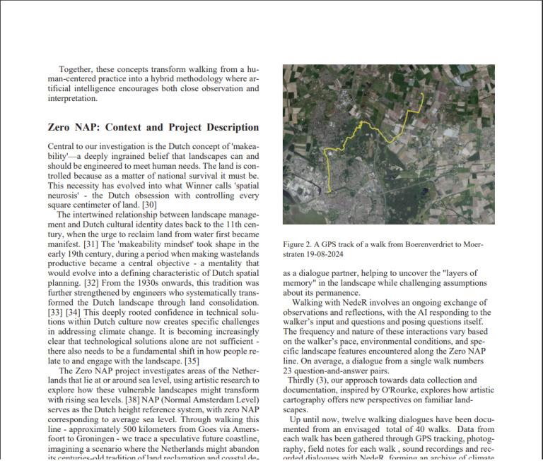 The ISEA2025 proceedings are out, and I’m excited to share that our paper “Walking with AI: Speculative walking as artistic practice” is part of it. Written together with Steven Devleminck and Sandy Claes from KU Leuven, this paper represents months of walking, talking, thinking, and writing about what happens when you add an AI companion to an artistic walking practice. …..